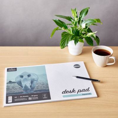 - This A3 5mm squared desk pad is designed for you to use your own way – jot down all your daily notes, to-do lists, solve mathematical problems, create graphs and revision mind maps – you choose! With 50 sheets of sustainably sourced premium 90gsm paper, each printed on the front and plain on the reverse, you'll have plenty of space for your notes. The sturdy backing board and the glued bottom edge prevent the corners curling as you work. And when you're ready to start a new sheet it's simply a quick and easy tear off.