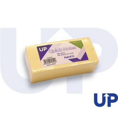 Repositionable notes in yellow ideal for messages and quick notes. Suitable for use in the home or office and will stick to most surfaces. Each pad contains 100 sheets, each pack contains 12 pads.