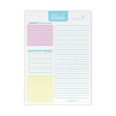 - Keep track of tasks and appointments with this handy 'Things to Do' desk pad. The coverless, tear away pad has space for weekly tasks with dedicated 'Important' and 'Urgent' sections for those more pressing tasks. The pad features 60 pre-printed sheets, each measuring 210 x 148mm. The coverless pad is glue bound for easy tear-off of pages, week after week, while working through important tasks. The A5 pad fits on any home or office desk and is ideal for scheduling all tasks, whether large or small. Designed to combine structure and flexibility, the Luxpad by Silvine is a stylish and practical addition to the desktop.