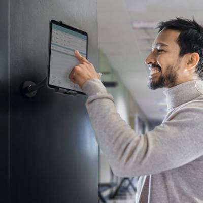 Anti-theft protection includes a locking mechanism with a special key and an optional cable lock. With rubberized surfaces to prevent damage and a cable recess for organised power supply, this holder is ideal for public spaces, trade shows, hotels, restaurants, and retail settings.