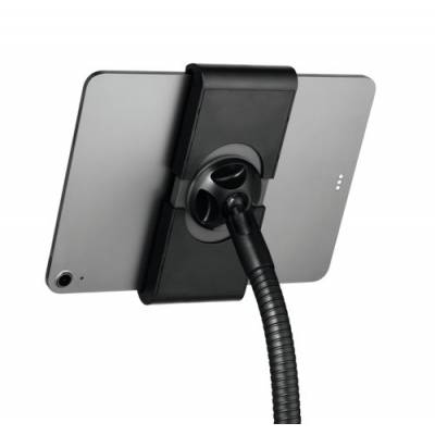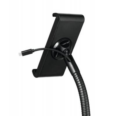 - The Durable Tablet Holder TOUGH Floor Stand offers a secure and versatile solution for displaying tablets in public and professional settings. This stand is made from flame-retardant material and features a flexible ball joint and swivel arm for effortless positioning. Its ergonomic gooseneck design allows for infinite height adjustments and 360-degree rotation, ensuring optimal viewing angles.