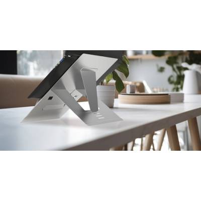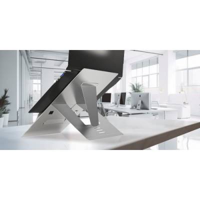 - Ergonomic laptop stand with retractable in-line document holder for business comfort and pain-free work.