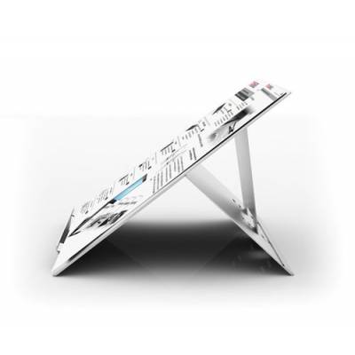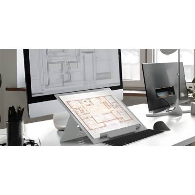 The standivarius Libro H is a portable A3 fold-away document and book holder. It has been designed to provide a correct in-line working position to relieve back / neck pain. It can be used to hold single documents, A4 spreads, open books, A3 sheets of paper or just tablets, what ever you need for your work. With 5 height adjustment possibilities it matches all height and opening angle requirements. It is also an excellent space-saver as it has a smaller footprint and it folds flat to just 2.5 mm - a good ergonomic companion for small desks.
