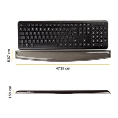 - This self adjusting gel wrist rest allows personalised comfort as the keyboard support has the ability to conform to your wrist, which helps relieve pressure and fatigue whilst typing. With the easy clean surface, the innovative design allows you to wipe the keyboard wrist rest clean with a damp cloth, making it perfect for all environments. Typing on a keyboard or using your mouse for hours at a time, can cause pain and discomfort to your wrists which is why a wrist support is necessary for a healthier workspace. To prevent frustration in the workplace or at home, we have incorporated a non-skid rubber backing to the keyboard wrist support which keeps it in place and prevents it from slipping around. Fellowes understand that bad working habits cause many of us physical health problems and fatigue. By using this knowledge we have created a comprehensive range of ergonomic solutions like this innovatively designed products that help you enjoy a more comfortable and productive workspace.