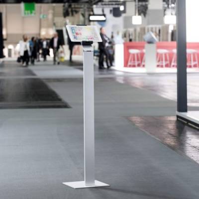 The clamp can also be tilted 0° to 88° for complete flexibility. The stand is made from sheet steel and aluminium provides stability when using the device. Perfect for use in hotels, exhibitions, trade fairs, restaurants, etc.