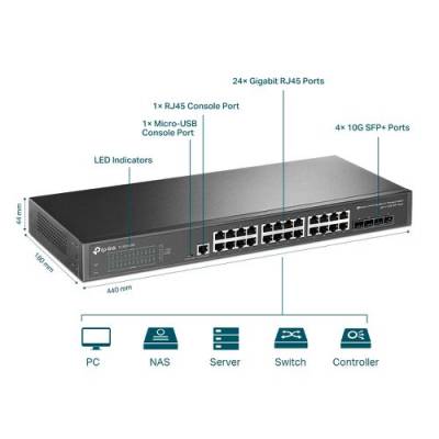 TP-Link JetStream 24-Port Gigabit and 4-Port 10GE SFP Plus L2 Plus Managed Switch with 24-Port PoE Plus