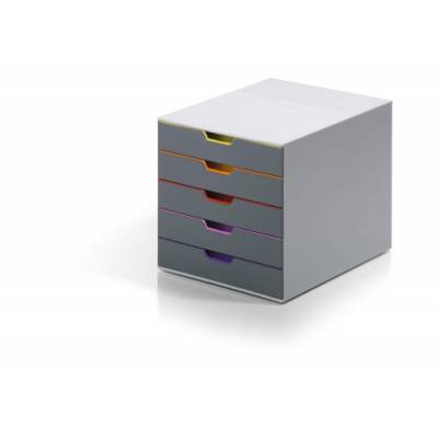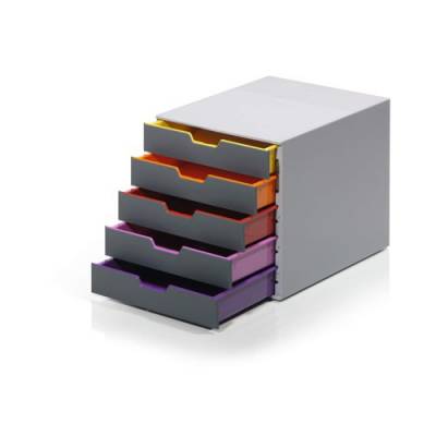 - Durable’s contemporary VARICOLOR® drawer box is made of premium-quality plastics with 5 silent smooth-operating drawers. Say goodbye to large filing cabinets and enhance your organisation with colour coloured draws giving you more space for the things you love.