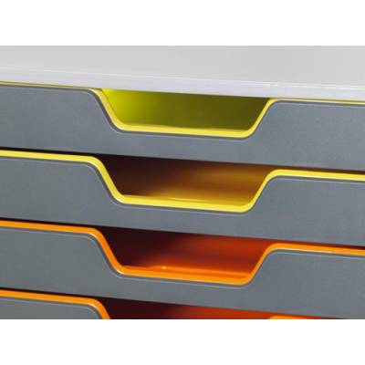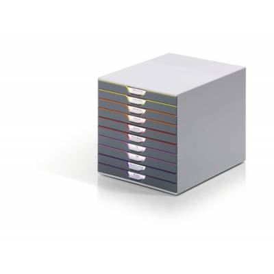 - Durable’s contemporary VARICOLOR® drawer box is made of premium-quality plastics with 10 silent smooth-operating drawers. Say goodbye to large filing cabinets and enhance your organisation with colour coloured draws giving you more space for the things you love.
