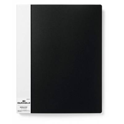 - Durable’s DURALOOK® Plus display book with 10 anti-tear crystal clear display pockets. Featuring a full length printable spine label and professional black polypropylene cover. The book is perfect for portfolios and 1 to 1 presentations.
