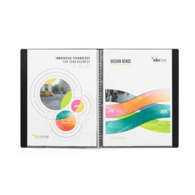 Durable’s DURALOOK® Plus display book with 10 anti-tear crystal clear display pockets. Featuring a full length printable spine label and professional black polypropylene cover. The book is perfect for portfolios and 1 to 1 presentations.