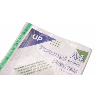 UP Punched Pockets A4 50 micron Glass Clear Green Strip (100)