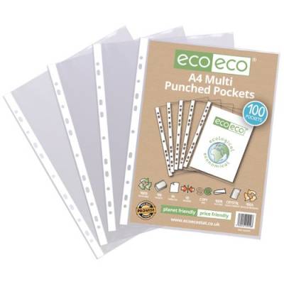 Eco Eco A4 100% Recycled Bag Multi Punched Pockets - Pack of 100
