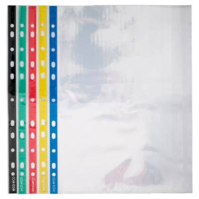 A4 100% Recycled Colour Spine Multi Punched Pockets - Pack of 25