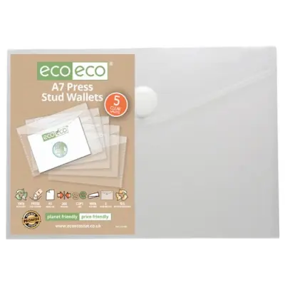 - Strong 200-micron strength A7 size wallets, ideal for home, office and professional use. Great for holding receipts, bank cards, and business cards. 5 Wallets per single pack. Clear visibility with smooth finish and superior strength. Acid free and copy safe. Responsibly sources materials and responsibly produced. Made from 50% recycled materials, product and packaging both 100% recyclable.