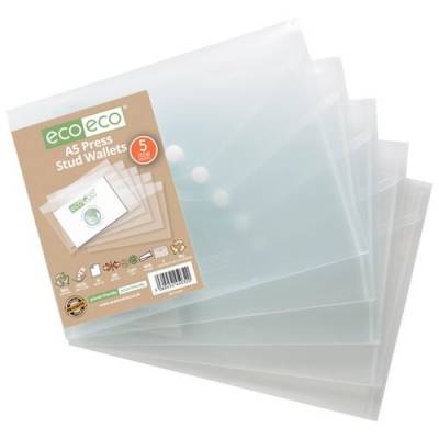 ECO033-SECO033-SECO033-SEco Eco A4+ 95% Recycled Press Stud Wallets - Pack of 5