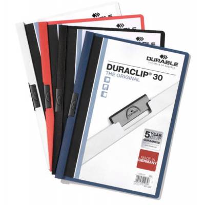 - The original DURACLIP® folder with a new clip design for smoother handling. It is ideal for protecting, organising and presenting un-punched documents. The design features a transparent anti-glare, anti-tear front cover and corrosion protected steel clip.