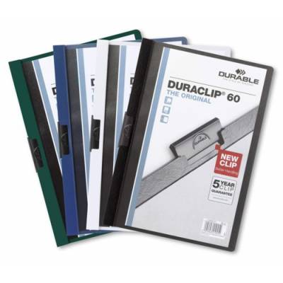 - The original DURACLIP® folder with a new clip design for smoother handling. It is ideal for protecting, organising and presenting un-punched documents. The design features a transparent anti-glare, anti-tear front cover and unique sprung steel clip.
