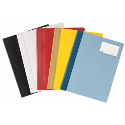 Professional project folder with coloured covers and a transparent inner pocket for storing unpunched files. The plastic-coated stapling mechanism with end caps makes inserting documents a breeze and keeps them secure.
