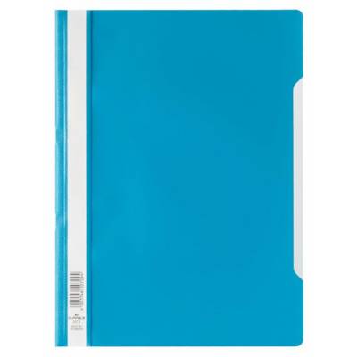 - Durables original Clear View folder made from copy safe anti-glare polypropylene. The folder features a transparent front cover, and full length label holder for organisation. The rear cover is recessed for easier page turning and includes a 8cm filing bar for punched paper.