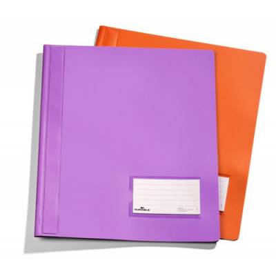 Professional DURALUX folder with translucent coloured covers and a transparent inner pocket for storing unpunched files. The plastic-coated stapling mechanism with end caps makes inserting documents a breeze and keeps them secure.