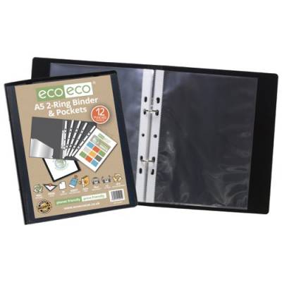 Eco Eco A5 65% Recycled Ring Binder with 12 Multi Punched Pockets - Single