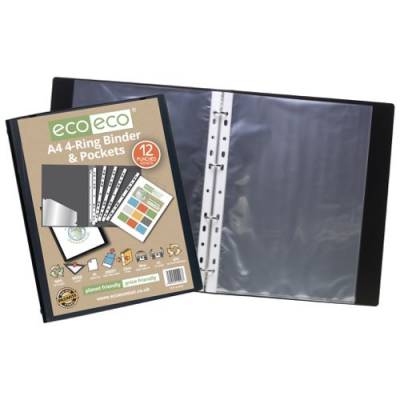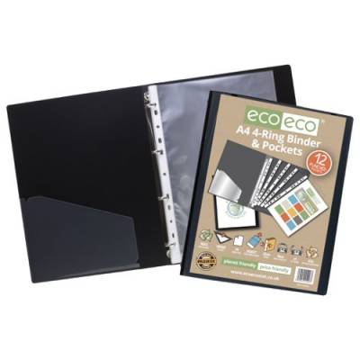 Eco Eco A4 65% Recycled Ring Binder with 12 Multi Punched Pockets - Single