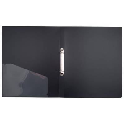 Strong black 800 micron cover ring binder with clear 160 micron A4 size sleeve on front cover for personalisation and presentation. Clear additional storage pocket featured inside of front cover to house loose items and documents. 2 ”O” ring mechanism securely hold A4 punched pockets or paper. Ring capacity 15mm with a 22mm spine. Responsibly sourced materials and responsibly produced. Made from 95% recycled materials, product 100% recyclable.