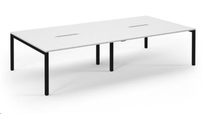 Connex Scalloped 3200 x 1600 x 725mm Back to Back Desk ( 4 x 1600mm ) - Black Frame / White Top