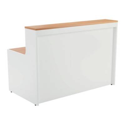 - With clean and elegant lines, this Jemini Reception Unit is ideal for use in a variety of reception areas. The modular design features a panel end construction incorporating a fixed riser unit. The unit has a sturdy 25mm thick desktop. This reception unit measures 1400x800x740mm and features a white base with a top finished in beech.
