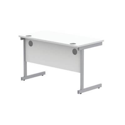 Astin Rectangular Single Upright Cantilever Desk 1200x600x730mm Arctic White/Silver KF803507