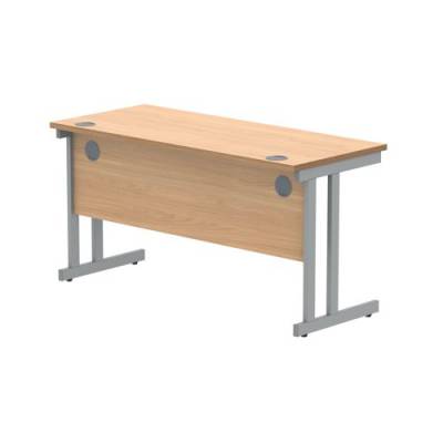 Polaris Rectangular Double Upright Cantilever Desk 1400x600x730mm Norwegian Beech/Silver KF822030