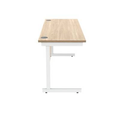 Polaris Rectangular Single Upright Cantilever Desk 1600x600x730mm Canadian Oak/White KF821740
