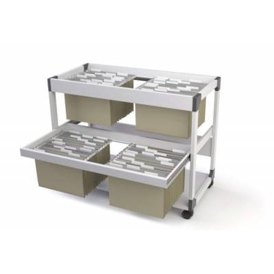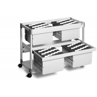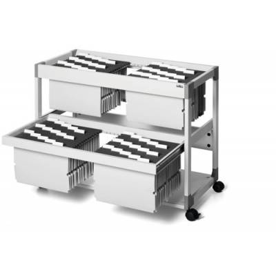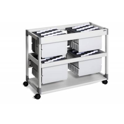 Introducing Durable’s suspension file trolley DUO designed for efficiency and mobility. With capacity for 200 A4 suspension files, it's made of durable, scratch-resistant coated steel with fibreglass-reinforced corners. Equipped with four castors, including two with brakes, it offers smooth and stable manoeuvrability for effortless file transportation in any workspace.