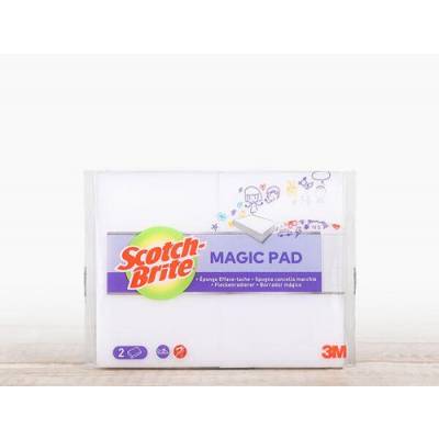- Scotch-Brite® Magic Pad easily removes a variety of stains and marks from a range of surfaces without using detergents or harsh chemicals: just add water! It can remove crayon marks, finger prints, limescale and rust stains from most solid surfaces.