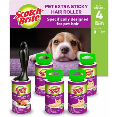 - Scotch-Brite™ Pet Extra Sticky* Hair Roller is the only lint roller made with Scotch® Brand adhesive. It has an ergonomic handle and tears cleanly down to the last sheet.