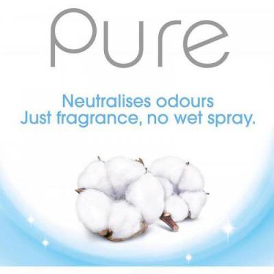 The Air Wick Pure Soft Cotton helps to refresh and invigorate any space. Air Wick Pure is ideal for eliminating odours to give a long lasting fragrance with an instant welcoming aroma. Supplied in 250ml with a soft cotton scent.Â