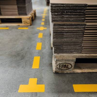 A range of permanent adhesive indoor floor marking shapes perfect for indicating dangerous areas, storage spaces and walkways, etc.