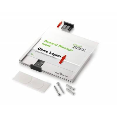 - Modern German-designed door plates with ribbed aluminium backing and crystal clear acrylic window. The stylish offset fixing caps make changing inserts a breeze.