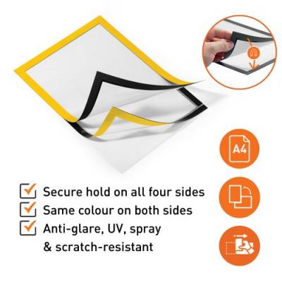Durable DURAFRAME Self-Adhesive Sign & Document Holder with Magnetic Frame A4 Yellow (Pack 2) - 487204