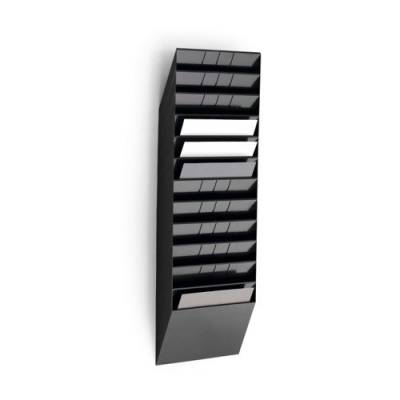 A 12-slot modular literature holder perfect for displaying and presenting documents in A4 format. Made of strong plastic and can be installed and mounted to flat load-bearing surfaces in a matter of moments. The document holder can be easily extended to add further slots for a flexible future-proof solution