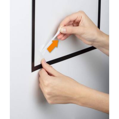 The detachable info frame DURAFRAME WALLPAPER is the ideal solution for displaying information on sensitive surfaces. The inserts can be quickly exchanged thanks to the unique magnetic fold-back frame. Can be attached to sensitive surfaces such as wallpaper, wood, and plastics, and can be removed without leaving any marks or residue.