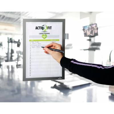The original fold-back frame. DURAFRAME® NOTE with pen holder is the ideal solution for writing directly on documents and notices. The inserts can be quickly exchanged thanks to the unique magnetic fold-back design.