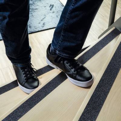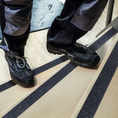 Strong durable anti-slip tape for improved safety in covered outdoor areas. The aluminium tape is perfect for steps, ramps, industrial floors and treads on machines and vehicles.