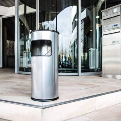- Introducing our 17L integrated ashtray bin, a smart solution for keeping outdoor spaces clean and accommodating smoking needs. With a removable aluminium insert, cleaning is a breeze. Durable and sleek, it fits seamlessly into any environment, ensuring a tidy and organised space. Say goodbye to scattered cigarette butts with this convenient and stylish solution.