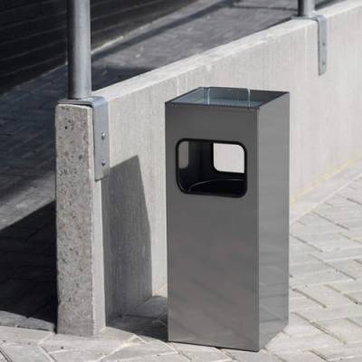 - Introducing our 17L integrated ashtray bin, a smart solution for keeping covered outdoor spaces clean and accommodating smoking needs. With a removable aluminium insert, cleaning is a breeze. Durable and sleek, it fits seamlessly into any environment, ensuring a tidy and organised space. Say goodbye to scattered cigarette butts with this convenient and stylish solution.