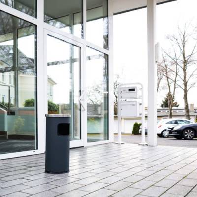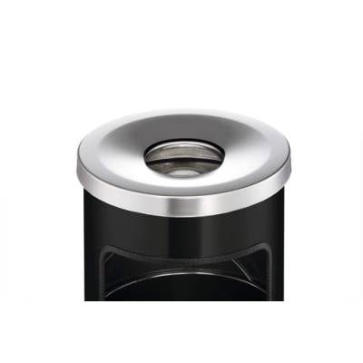 Introducing our integrated self-extinguishing ashtray bin, the perfect addition to covered outdoor areas where cleanliness and safety are paramount. This bin features a self-extinguishing lid that ensures cigarette butts are safely extinguished upon disposal by disrupting the oxygen flow inside the bin.