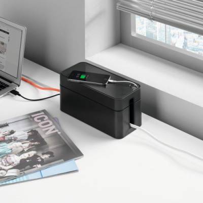 | CABLE PROTECTION - The box features a handy USB slot and 2 cable outlets, opposed for air circulation and rubberised to protect your leads |