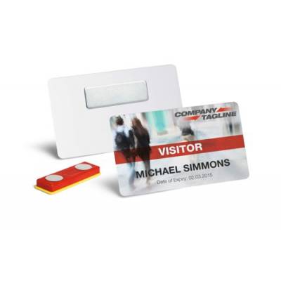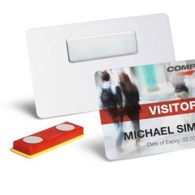 - A German designed simple and secure magnetic fastening that is clothing safe and will not damage even delicate fabrics. It features a strong adhesive backing for securely attaching to any name badge of your choice.