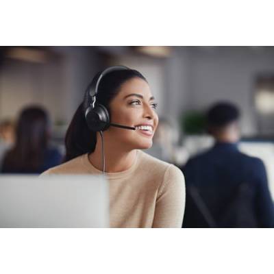The Jabra Evolve2 40 is a wired headset with an advanced digital chipset and three strategically placed professional microphones, for 35% less background conversation noise on your calls. When you put on your headset you can feel the noise around you instantly fade. Memory foam oval ear cushions and pioneering angled design cancel 48% more of the noise around you. Featuring powerful leak-tolerant 40mm speakers and the advanced digital chipset ever, delivering audio that always keeps you in the loop.