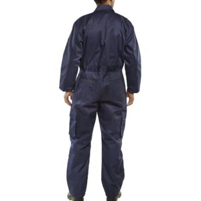 65% polyester, 35% cotton, Quilt Lined, Concealed two way zip front, 2 breast pockets, Reinforced elasticated waist, 2 swing pockets with side access, 2 rear pockets, one with hook and loop flap, 1 rule pocket